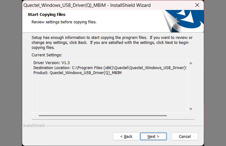 Siga las instrucciones para instalar el controlador Quectel. Haga clic en Siguiente. (Fig. 6)