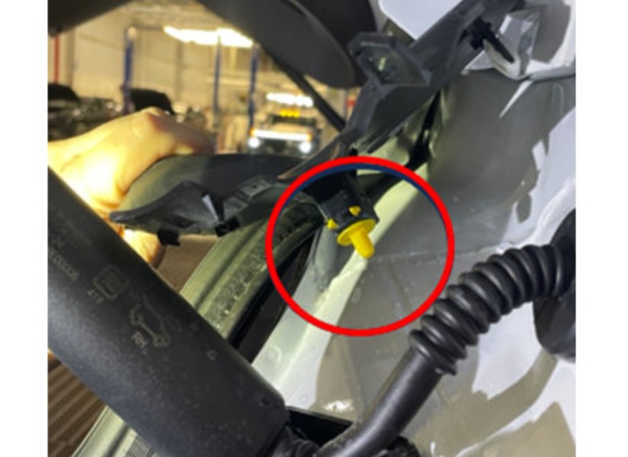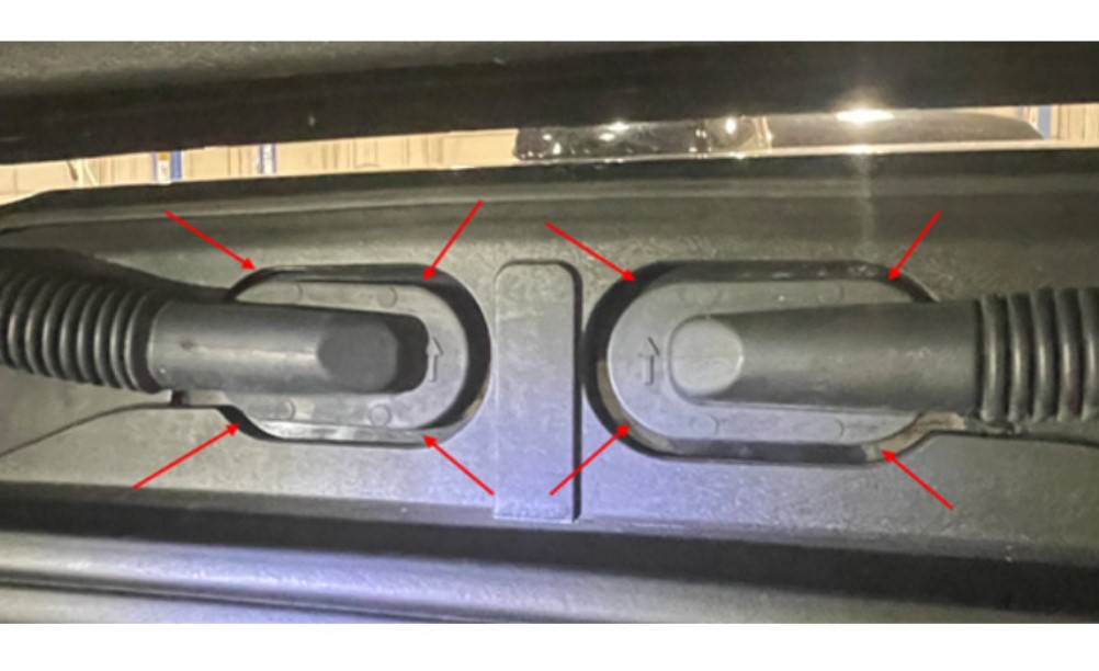 Una vez que se instale el nuevo interruptor, verifique si hay fugas de agua dentro del vehículo. Antes de volver a instalar la moldura interior del pilar D izquierdo, rocíe agua sobre la zona de la moldura del canal del techo trasero izquierdo y revise si hay fugas de agua en el vehículo. Si entra agua en esta zona, puede correr por el arnés de cableado que conduce a los interruptores del asiento de 3ra fila.