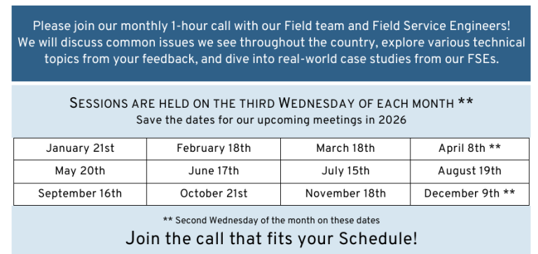 Los equipos de FSE siempre están buscando temas potenciales para cubrir durante las reuniones. Se alienta a los técnicos que desean sugerir un tema particular para una reunión futura que envíen un mensaje a la dirección de correo electrónico indicada en el mensaje de Global Connect publicado cada mes. Las discusiones de reuniones futuras se basan en la información más reciente solicitada por los técnicos, por lo que todas las sugerencias de temas son bienvenidas.