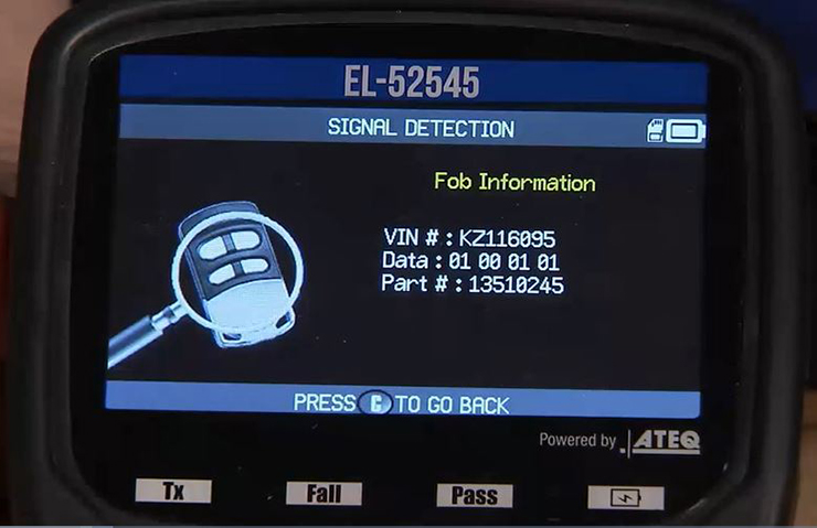 Verifique la operación del transmisor de llave y verifique el estado de la batería del mismo utilizando la herramienta EL-52545 para TPMS y RF. (Fig. 22) Después de presionar un botón del transmisor diez veces seguidas, verifique que la salida del transmisor sea superior al 20% utilizando el medidor de intensidad de señal de la herramienta EL-52545.